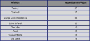 A novidade para esse semestre será a Oficina de Big Band com 16 vagas ofertadas. Os interessados pelas práticas de Choro, Coral e Big Band deverão gravar um vídeo de no máximo dois minutos de duração, conforme as orientações do edital. A seleção será realizada entre os dias 31 de janeiro e 03 de fevereiro de 2022.