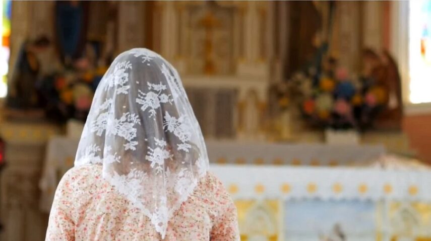 O véu sobre a cabeça e ombros das mulheres é uma imagem especialmente associada à lembrança visual de celebrações religiosas do passado. Na Igreja Católica, em particular, a peça era indispensável ao culto e isso prevaleceu até o início da década de 1960. Feitos de fina e leve renda transparente, em que se distinguiam desenhos sutis, podiam ter cores diferentes, mas o preto e o branco eram as principais. Independentemente do seu significado teológico e confessional, o véu dava uma solenidade especial ao ambiente e às pessoas que usavam. Não obstante a exigência referir-se ao interior do templo, o uso muitas vezes se estendia fora dele. Nas cidades pequenas médias de então, de poucos automóveis particulares, era comum ver-se, caminhando por ruas próximas à igreja, mulheres com a cabeça coberta, antes ou após as missas. A peça também podia ser vista durante as procissões.