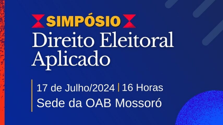 A Comissão de Direito Eleitoral da OAB Subseção de Mossoró realizará no próximo dia 17 de julho, às 16h, o Simpósio de Direito Eleitoral Aplicado. O evento, que acontecerá na sede da subseção, é voltado para advogados e estudantes de Direito interessados em atualizar seus conhecimentos e trocar ideias sobre o Direito Eleitoral.