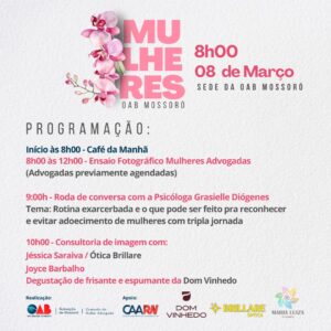 A iniciativa da Comissão da Mulher Advogada da OAB Subseção de Mossoró reflete o compromisso em promover o bem-estar e a valorização das advogadas, proporcionando momentos de integração, aprendizado e celebração em uma data tão importante como o Dia Internacional da Mulher.
