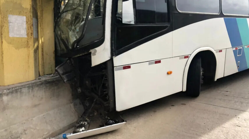 Ônibus bate em estrutura de túnel e 8 pessoas ficam feridas