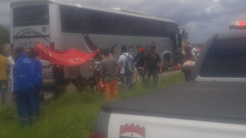 Ônibus com time do Potiguar colide com moto e deixa feridos na BR-304