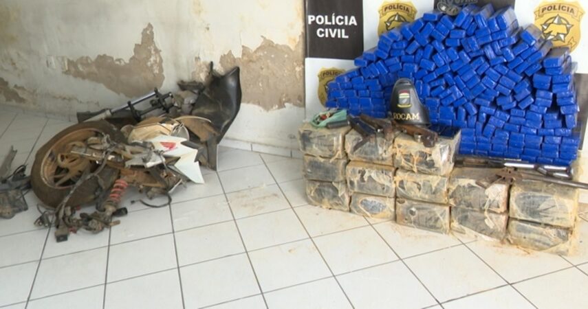 Além da droga, foram apreendidas quatro armas de fogo e uma motocicleta com registro de roubo.