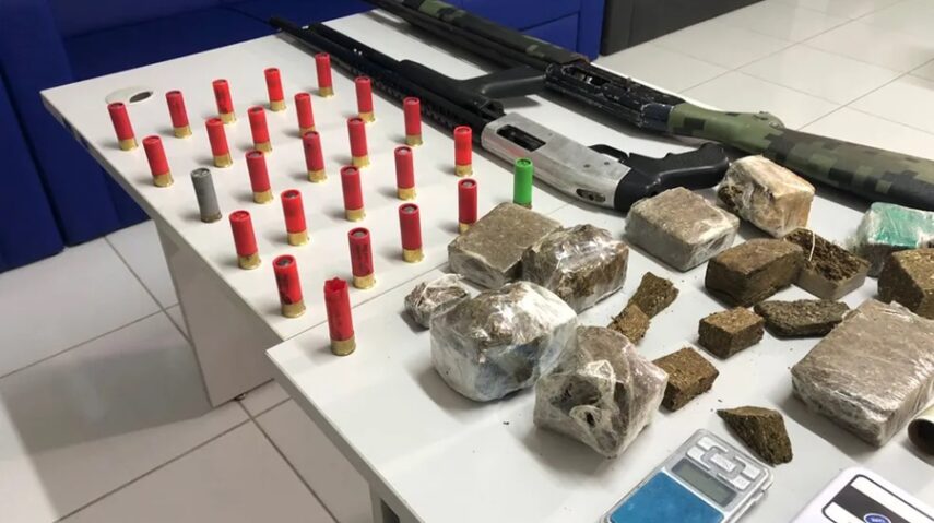 Ainda conforme a polícia, os criminosos usavam o local para armazenar e distribuir os entorpecentes na região. Além das armas e drogas, também foram apreendidas munições, armas brancas e balanças.