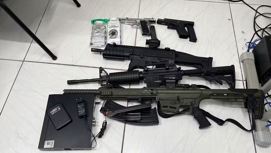 Durante a ação, foram apreendidos celulares, uma substância semelhante à maconha, R$ 130 mil em dinheiro, um fuzil, uma carabina, uma espingarda e duas pistolas.