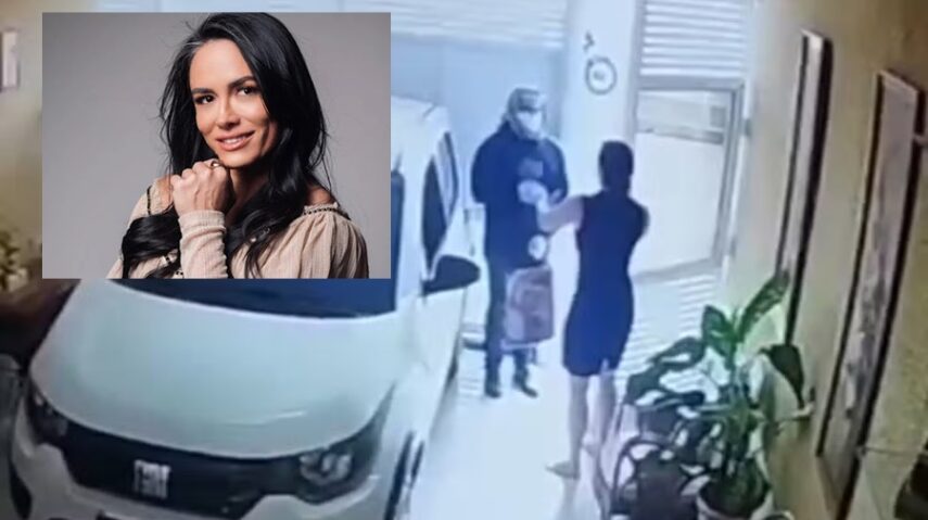 Imagens gravadas por câmeras de segurança registraram um suspeito entrando na casa da vítima e sendo recebido por ela. Segundo a polícia, o homem preso é o mesmo que aparece nas filmagens.