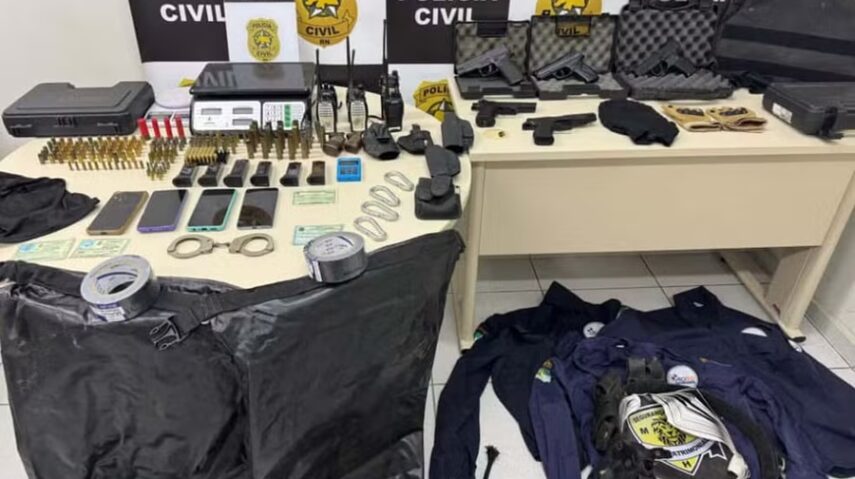 A Polícia Civil do Rio Grande do Norte apreendeu, nesta quarta-feira (1º), munições, colete à prova de balas com suspeita de furto, rádios comunicadores, balança de precisão, fardas de empresas de segurança e acessórios de armas de fogo em um imóvel de um policial militar aposentado, em Natal.