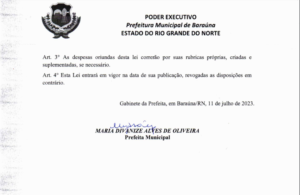 A prefeita de Baraúna, Divanize Oliveira(PSD), recentemente decidiu adiar a aplicação de uma lei municipal que estava prevista para entrar em vigor este ano e que agora será implementada apenas em janeiro, após as eleições. A lei, proposta pela própria prefeita, estabelece punições para quem não possui documentação regular de veículos, como motos e carros, e para motoristas que não possuem habilitação.