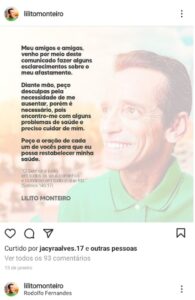 Por suas redes sociais, Lilito pediu desculpas aos munícipes da cidade por estar renunciando e justificou que o afastamento definitivo do cargo é para tratar de problemas com a saúde.