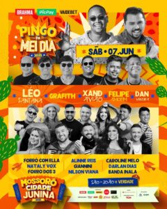A Prefeitura de Mossoró divulgou nesta terça-feira (3) a programação completa do Pingo da Mei Dia 2025, evento que marca a abertura oficial do Mossoró Cidade Junina (MCJ). A festa acontece no próximo sábado (7), a partir do meio-dia, no Corredor Cultural da cidade.