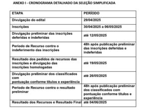 A lista divulgada pode ser conferida clicando AQUI. Seguindo o cronograma, os candidatos que foram indeferidos podem apresentar recursos pelo link no prazo de 48 noras após a publicação.