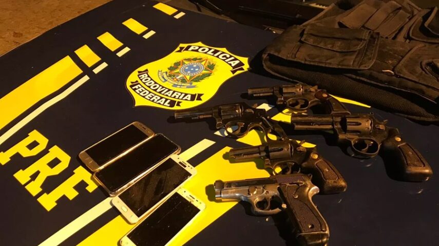 Caso aconteceu na madrugada desta quarta-feira (20). A PRF apreendeu cinco armas e um veículo roubado