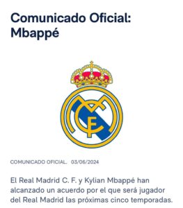 O Real Madrid, campeão da Champions no sábado, anunciou nesta segunda-feira (3) a contratação de Kylian Mbappé. O atacante acertou por cinco temporadas.