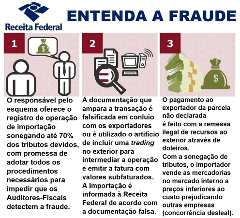 Foi identificada ainda a atuação de “consultores em comércio exterior” que possuem escritórios em países como China e EUA, e promovem o contato entre importadores brasileiros e fornecedores no exterior já integrados ao esquema de subfaturamento, oferecendo um pacote completo de serviços, que incluía a identificação dos produtos na origem, a emissão da documentação com valores subfaturados, a execução dos procedimentos de exportação no exterior e de importação no Brasil e até a remessa irregular ao exterior do quantum omitido.