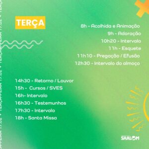 Tradicional desde 1999, o retiro promovido pela Comunidade Católica Shalom acontece de 15 a 17 de fevereiro, no Colégio Mater Christi, com entrada gratuita e programação para todas as idades.