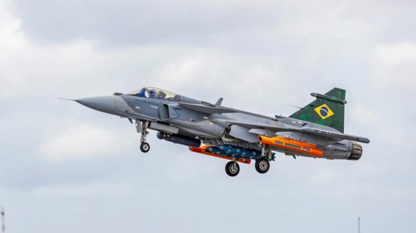 RN sedia testes inéditos de lançamento de bombas do caça F-39 Gripen