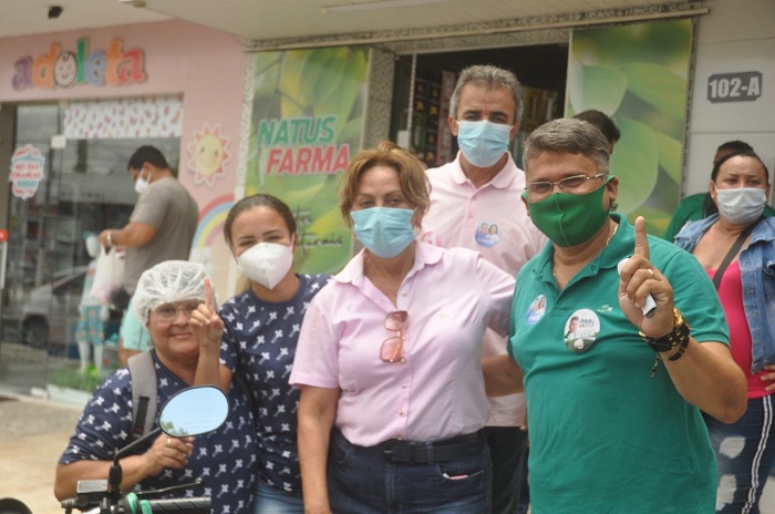 Os candidatos a vereadores Ronaldo Nunes (Patriota), Maria Lúcia (PP), Naldo Feitosa (PSC) e Solange Duarte (PL) acompanharam as visitas.