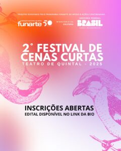 Seguem abertas as inscrições para o 2º Festival de Cenas Curtas – Teatro de Quintal