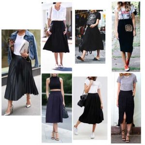 Além de nos deixar mais femininas, a saia preta consegue se encaixar em qualquer ocasião. Mas precisamos estar atentas as modelagens, pois não será igual para todo mundo. Por exemplo, numa modelagem evasê ou reta valoriza todos os tipos físicos; lápis já ressalta o quadril e godê dá volume.