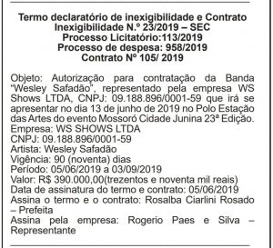 O show que o cantor Wesley Safadão apresentou nesta quinta-feira (13) na Estação das Artes dentro das festividades do Mossoró Cidade Junina foi o mais caro do evento. Custou aos cofres públicos R$ 350 mil.