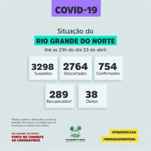 Subiu para 38 o número de mortos por coronavírus no Rio Grande do Norte, segundo o boletim da Secretaria Estadual de Saúde Pública (Sesap) nesta sexta-feira (24). Os casos de pessoas com testes confirmados para Covid-19 saltaram para 754.