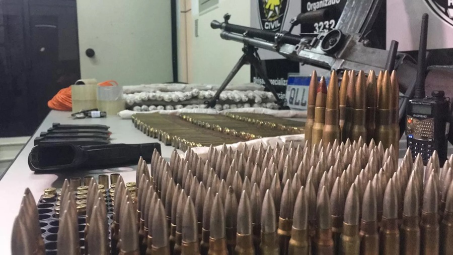 Um grande material de armamento, que era usado neste tipo de crime, também foi apreendido com a dupla. Uma metralhadora ligeira, de modelo semelhante à “Bren”, usada pelos ingleses na 2ª Guerra Mundial, estava com os suspeitos, além de mais de 100 munições para ponto 50, mais de 130 para ponto 30, 70 dinamites e 8 espoletas que acionavam explosivos. Dois carros e uma moto também foram apreendidos.