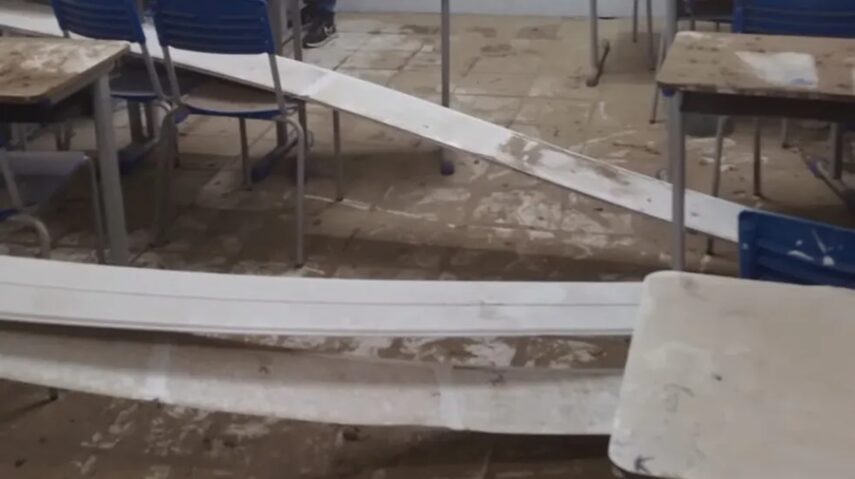 Teto de sala de escola pública desaba durante aula no interior do RN
