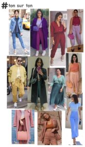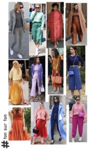 Ton sur ton, ou em português – tom sobre tom – que nada mais é do que, no universo da moda, utilizar no mesmo look uma determinada cor, mas em tonalidades diferentes.