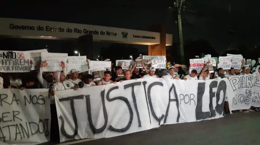 Membros de uma torcida organizada do ABC Futebol Clube e familiares realizaram um protesto na noite desta segunda-feira (18) na BR-101, em frente ao Centro Administrativo do Estado, para cobrar justiça pela morte de Leonardo Lucas Silva de Carvalho, de 26 anos. Ele foi vítima de um disparo de arma de fogo na cabeça durante confusão entre torcidas no bairro Ponta Negra, na Zona Sul de Natal.