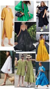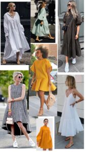 Veem aparecendo em variados estilos, tecidos, cores, estampas… com mangas bufantes, de alça, com babados, gola mais aparente… e por aí vai.