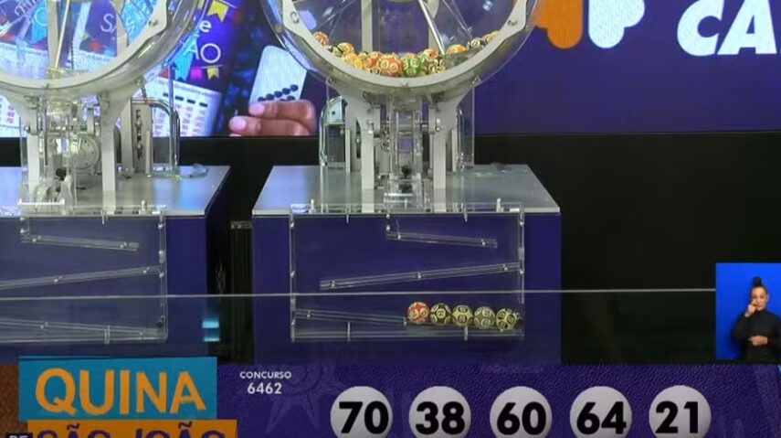 Veja abaixo os números do sorteio da Quina de São João, concurso 6462, realizado neste sábado (22):