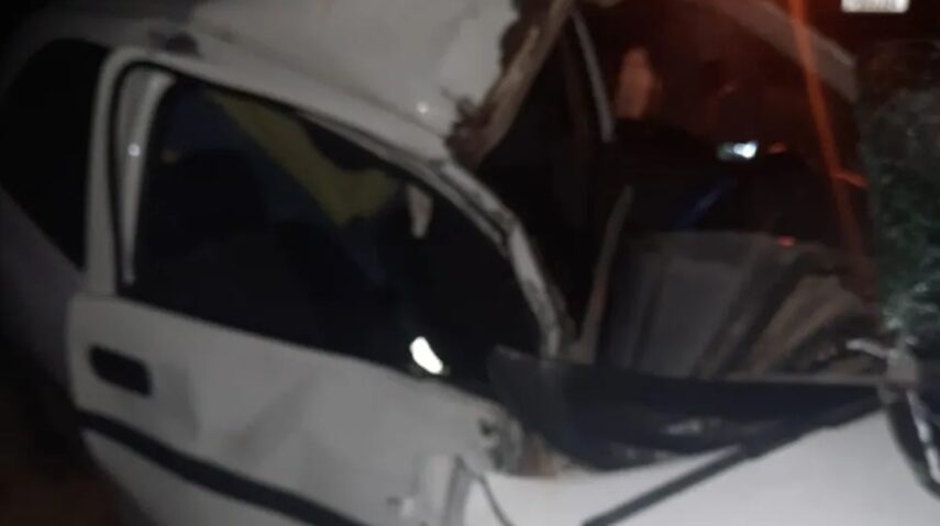 O carro e a moto ficaram destruídos com o impacto do acidente.