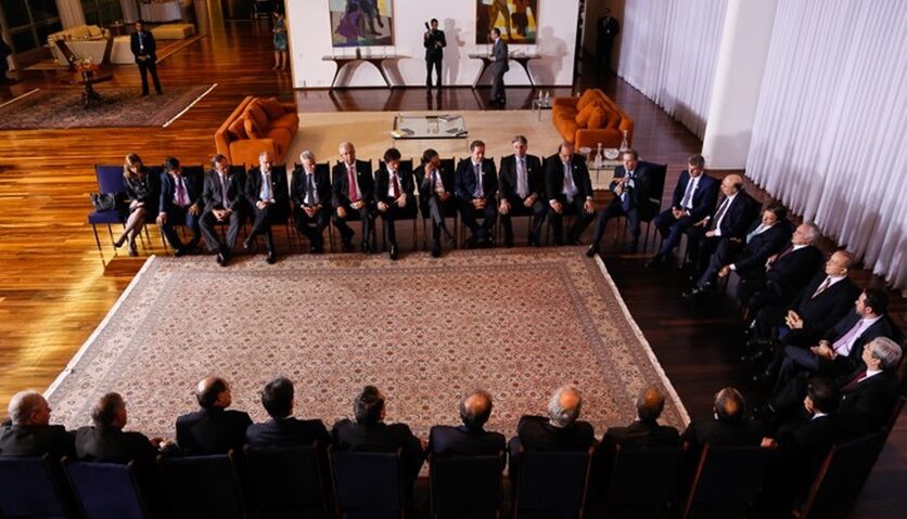 Ao todo, participaram do jantar, no Palácio da Alvorada, 16 governadores, quatro vice-governadores e presidentes de bancos públicos como o Banco do Brasil e a Caixa Econômica Federal. Os ministros da Casa Civil, Eliseu Padilha, da Fazenda, Henrique Meirelles, e do Planejamento, Dyogo Oliveira, também estiveram no encontro.
