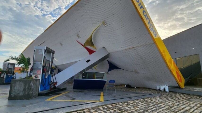 A cobertura de um posto de gasolina, localizado no bairro Alto do Sumaré, em Mossoró, desabou na tarde desta terça-feira (26) por conta de fortes ventos na região.