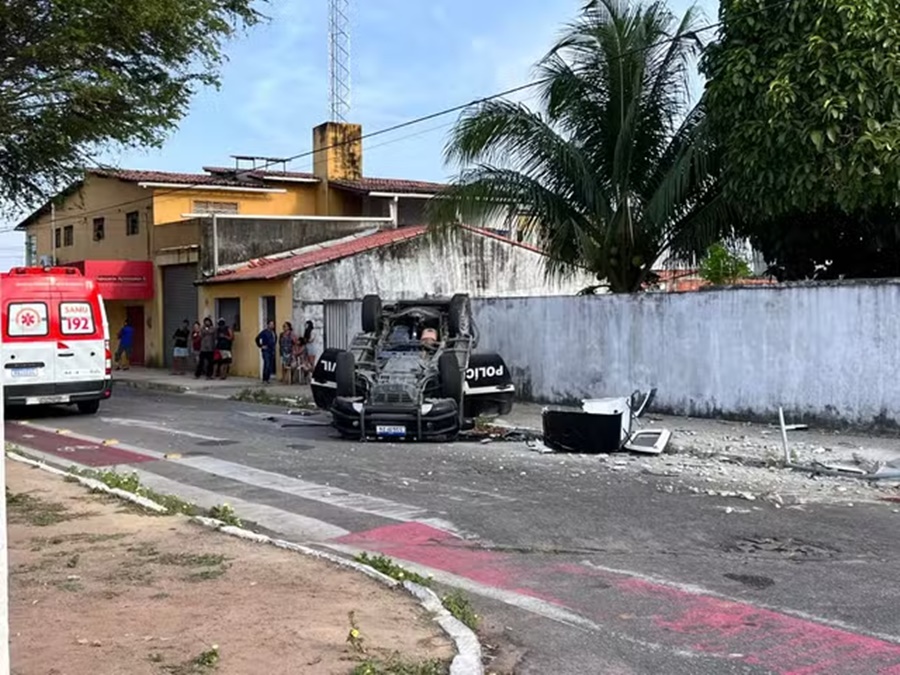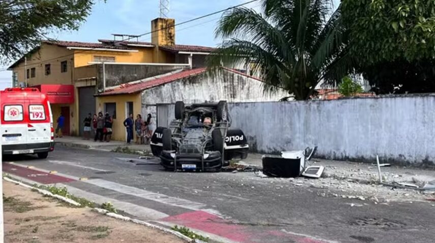 Uma viatura da Polícia Civil do Rio Grande do Norte bateu em um ônibus, atingiu um poste e capotou na manhã desta terça-feira (7) em Natal. Um preso que era conduzido pelos policiais na caminhonete morreu.
